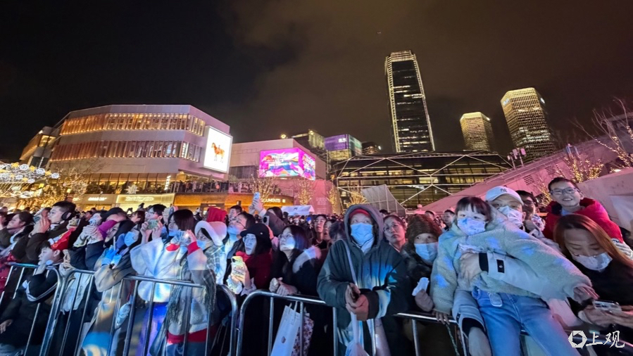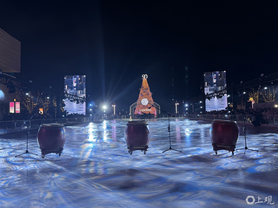 记者在现场看到,西岸梦中心主街星光璀璨,水岸露天冰场、船坞以及筒仓等三大核心场景迎新氛围浓厚。面积达1500平方米的水岸冰场变身跨年舞台,表演元素融贯古今,包括冰上钢琴《月光》、《雨中曲》快闪、《敦煌》鼓乐演奏、炫酷冰舞表演等。现场观众在《Happy New Year》的合唱中共同欢庆新年的到来。